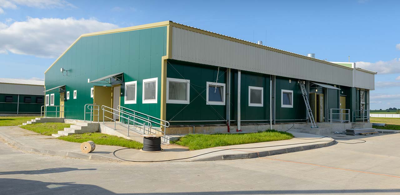 В составе объекта административно-бытовой корпус площадью 344 м2, здание карантина и цех откорма площадью 25 тыс. м2, цех репродукции - 17 тыс. м2, вспомогательные помещения общей площадью 5 тыс. м2, инженерная и транспортная инфраструктура.